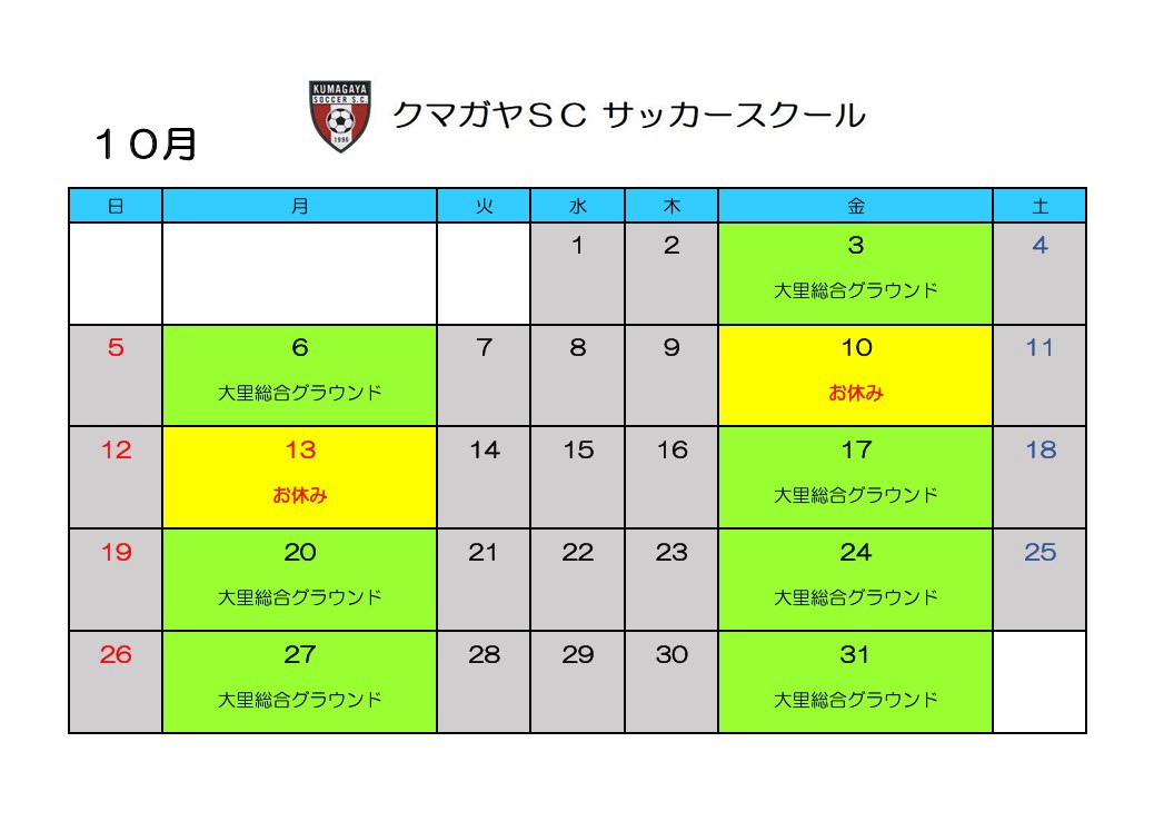 10月の予定になります。